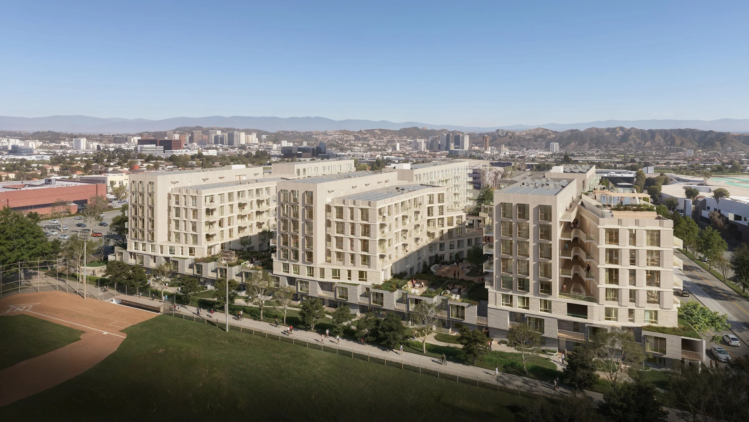 Project Description: The 2800 Project is a proposed mixed-use housing development. The project will replace a 115,000 square foot office building with approximately 385 residences/apartments (410,000 SF of residential area), 54,000 SF of community-serving retail, and 667 parking stalls. The residential plan includes 46 income-restricted residences and 339 market-rate residences with a range of unit types from studios to three-bedrooms. The project’s height varies from two to eight stories (max. 85’). The project site is approximately 4.5 acres, bordered by a neighboring office building and surface parking (SR Watt owned) to the north, 28th Street to the east, 28th Street / Donald Douglas Loop to the south, and Clover Park to the west. The site also sits just north of Santa Monica Airport.